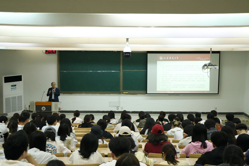 “徐州汉文化有着‘含蓄内敛’的意境、‘中庸和谐’的尺度与‘气韵生动’的神韵。”9月27日,商学院教室内座无虚席,校关工委常务主任、“讲师团”团长徐放鸣教授以“徐州汉文化的美学特质与当代传承”为主题,为新生开启了一场文化之旅。从《一饮尽千钟》到《大风歌》,从汉代三绝到汉式建筑,徐教授通过丰富案例,为新生锚定汉文化的历史坐标。他不仅系统阐释了汉文化的深厚底蕴,更以当代实践,引导新生在认知中传承、在传承中创新。