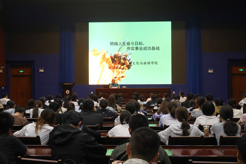 “大学阶段是奠定专业根基的关键时期。”9月29日,历史文化与旅游学院的讲座上,校“老年科协”会长、关工委“致远工作室”负责人杨绪敏教授的话语掷地有声。他提出“立体看历史”的治学理念,打破断代与专题界限,形成整体性历史认知。杨教授鼓励新生拒绝“躺平”,将个人成长融入时代脉络,涵育家国情怀。这场题为“明确人生奋斗目标,夯实事业成功基础”的讲座,为新生勾勒出清晰的成长路径。