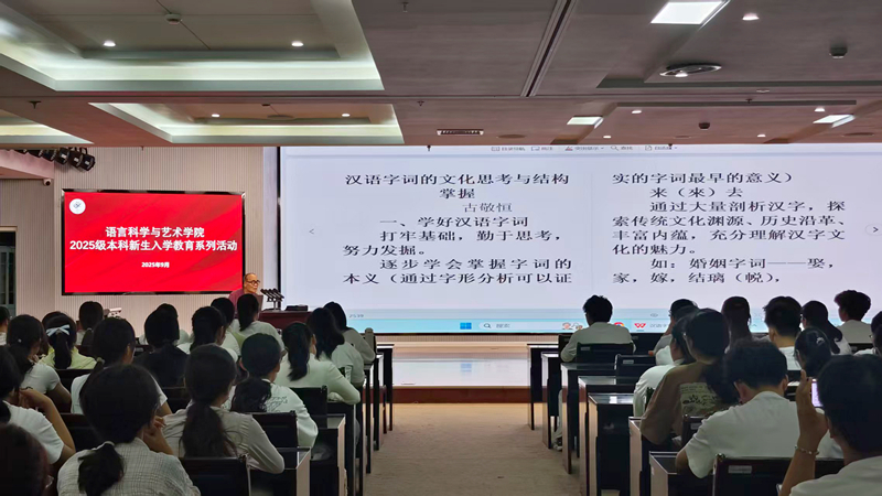 9月15日,在语言科学与艺术学院,81岁高龄的校关工委“致远工作室”成员古敬恒教授以“汉语字词的文化思考与结构掌握”为主题,通过生活中常见的语言案例,引导新生打牢基础、勤于思考。风趣的讲解让新生感受到汉字词中蕴藏的智慧与魅力。